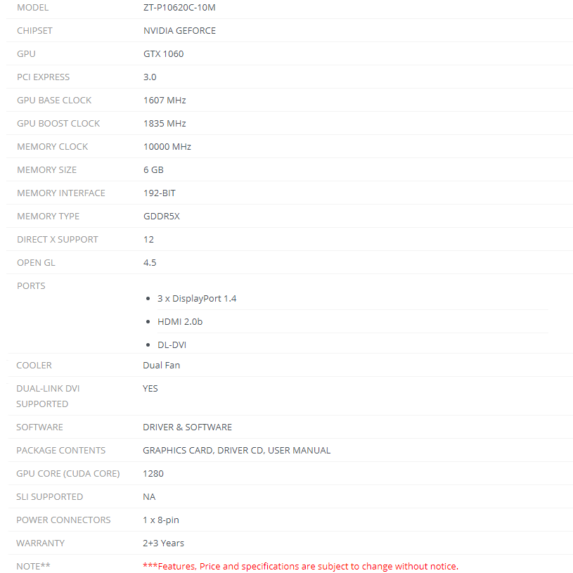 ZOTAC GEFORCE GTX 1060 AMP 6GB GDDR5X 192-BIT PASCAL SERIES GAMING GRAPHICS CARD, ZT-P10620C-10M